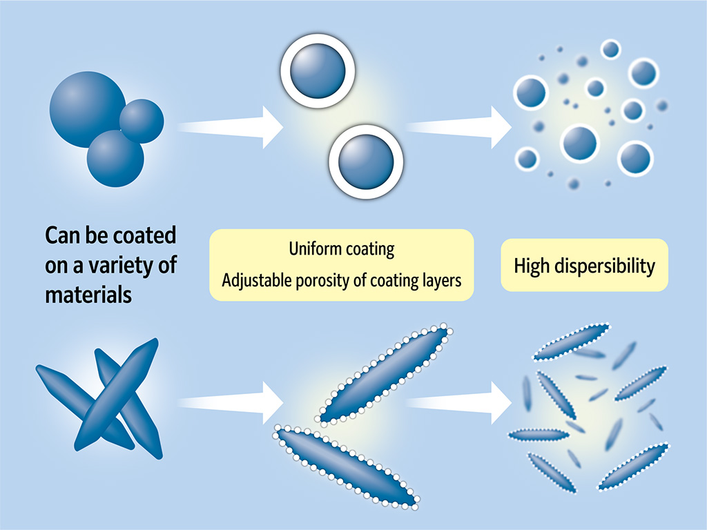 The coatings on individual particles are highly uniform and offer high dispersibility.