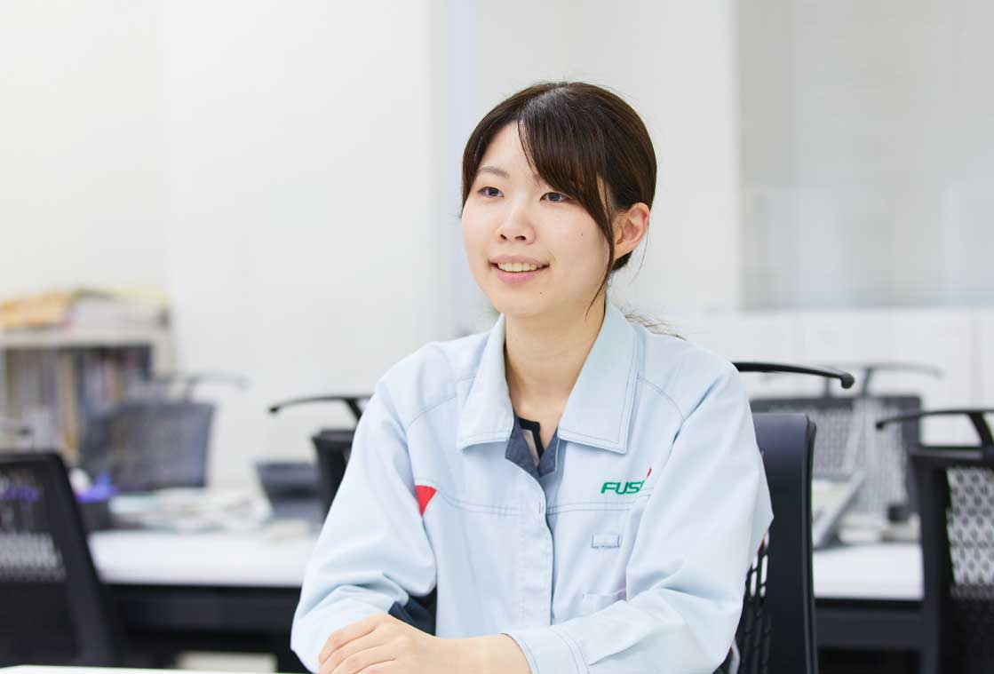 現在は3人のチームで開発を進めています。(取材日時点で) 入社3年目の私がリーダーで、あとは入社2年目と1年目の後輩という若いチーム。全員が女性です。商品開発部では半数以上が女性社員ということもあって、私のチームが全員女性なのはたまたまですね。リーダーとして意識していることは、こまめなコミュニケーション。「この実験方法、どっちがいいかな?」とか、気軽に議論するようにしてフラットな関係を心がけています。日頃からのたわいもない雑談も大切ですね。実験などで行き詰まってしまった時などは貴重な息抜きになりますし、さりげない会話から新しい発想が生まれてくることもあるのです。また、組織の垣根がなくて、わからないことなどを他部署の先輩にも気兼ねなく相談できます。このような風通しのよい空気はFUSOの大きな魅力です。