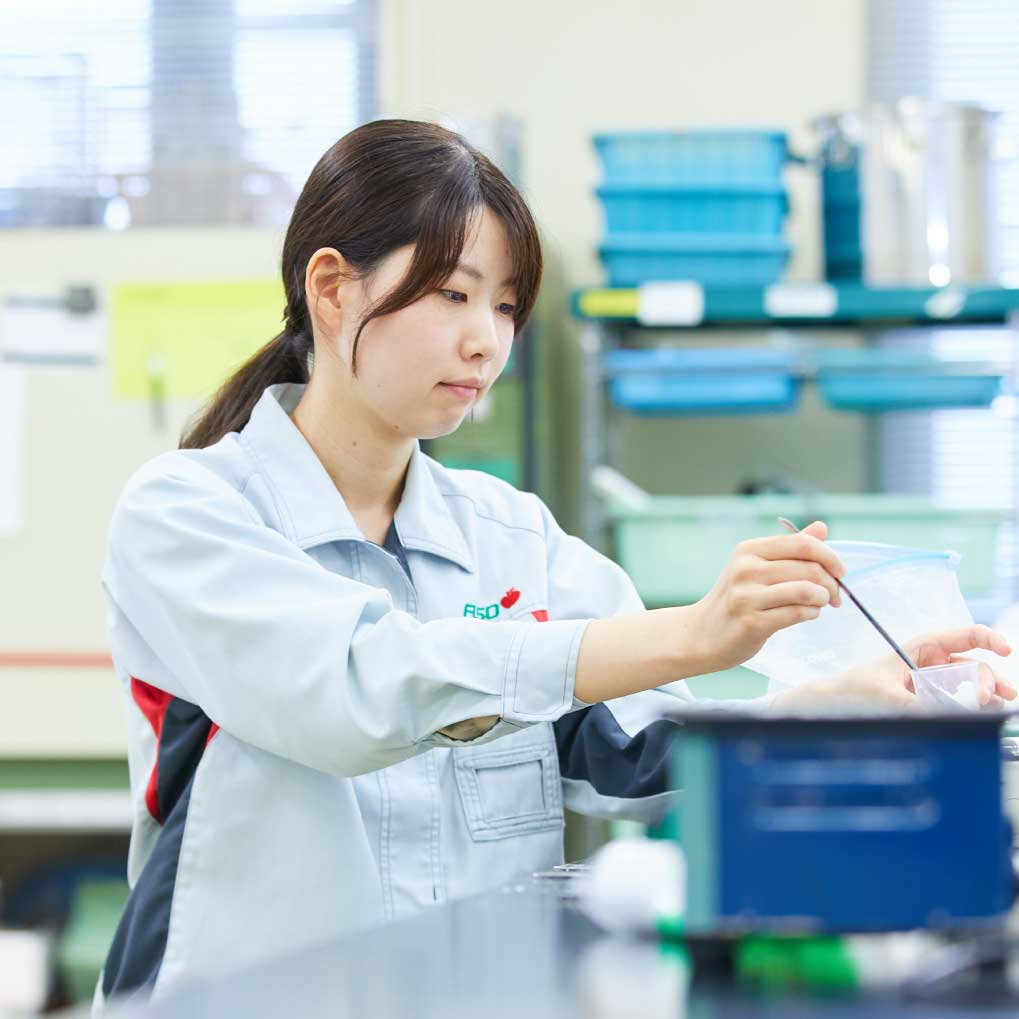入社後、商品開発部に配属。1年間ほど農業向けの植物活性剤の研究開発に取り組む。その後、有機酸に携わり、2020年から現在の開発テーマを担当。